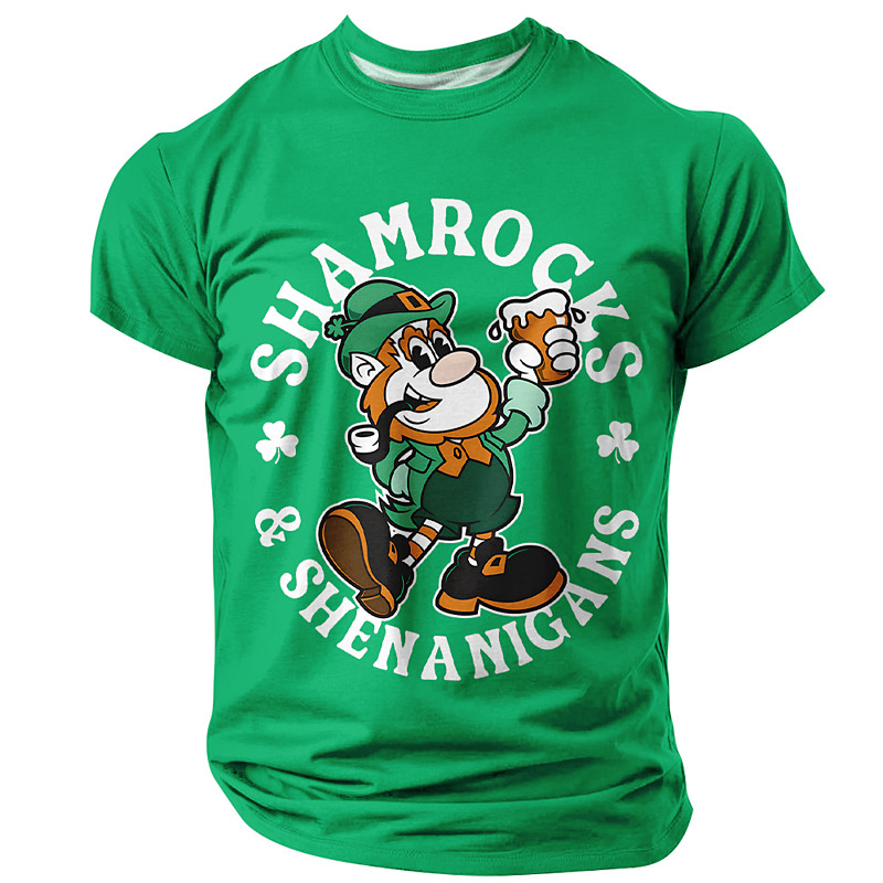 St Patricks Day Shamrocks and Shenanigans T Shirt Funny Retro Leprechaun Beer Graphic Tee Men Irish Lucky Clover Vintage Cartoon Party Top Clothing Apparel S M L XL XXL XXXL