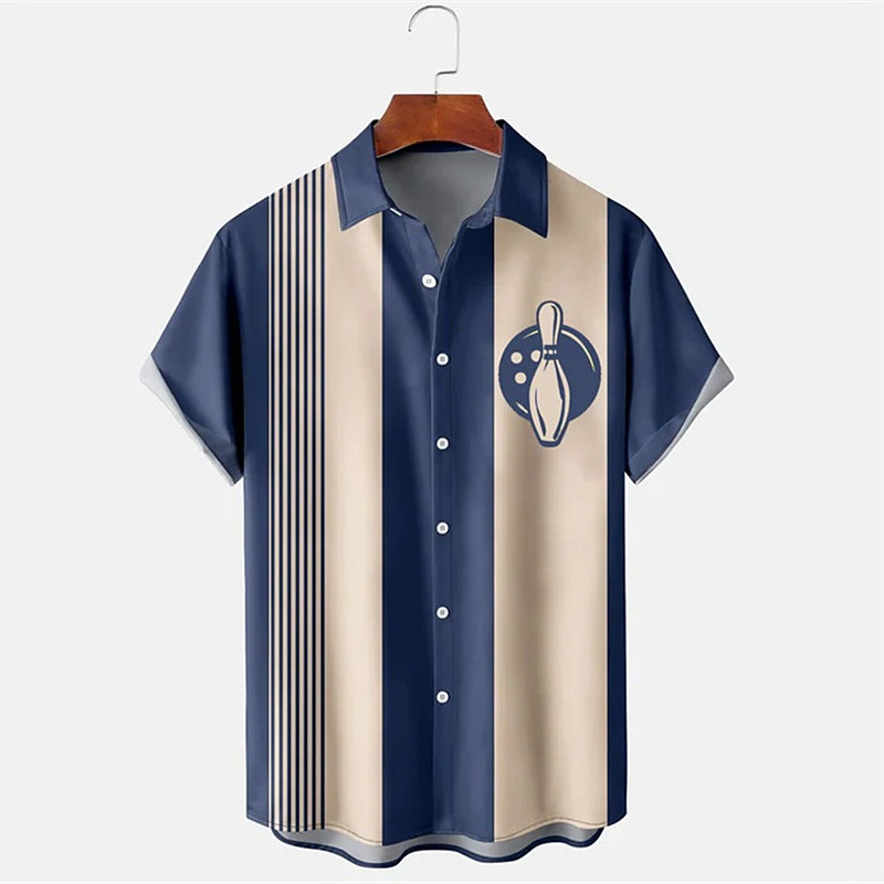 Men's Graphic Prints Bowling Ball Shirt Short Sleeves Shirt Turndown Outdoor Street White Green Black Yellow Red Blue Print Button-Down Clothing Apparel Designer Casual Soft Breathable