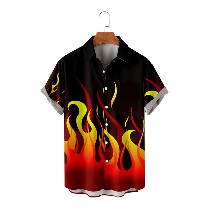 Men's Flame Shirt Button Up Shirt Short Sleeve Abstract Daily Wear Going out Weekend Autumn / Fall Turndown Print Button-Down Black Yellow Red Orange