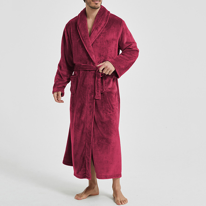 Men's Pajamas Robe Bathrobe Bath Gown Plain Stylish Casual Comfort Home Daily Bed Flannel Comfort Warm Lapel Long Sleeve Pocket Belt Included Fall Winter Black White
