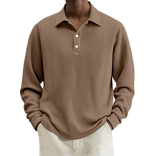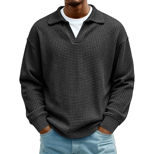Per uomo Polo da Golf Polo a Maglia Waffle Casuale Affari Scollo a V Manica Lunga Moda Essenziale Tinta unica Lavoro a maglia Autunno Inverno Vestibilità regolare Nero Bianco Verde chiaro Rosso Blu