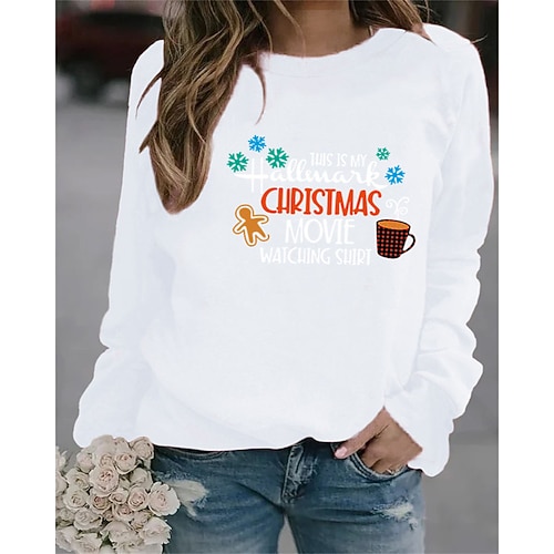 Per donna Felpa Pullover Floreale Grafico Babbo Natale Elegante Caldo Moda Manica Lunga Girocollo Top Regolari Casuale Casa Lavoro Patchwork Stampato Blu Bianco Rosa Rosso Viola Autunno Inverno