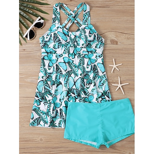 Costume da bagno Tankini da donna 2 pezzi con gamba corta controllo della pancia alta vita snellente senza schienale abbigliamento da spiaggia per le vacanze geometrico paisley scollo a V senza