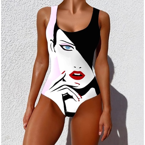 Costume da bagno intero donna snellente monokini slip controllo della pancia vita alta snellente schiena scoperta moda vintage ombre grafica a U senza maniche