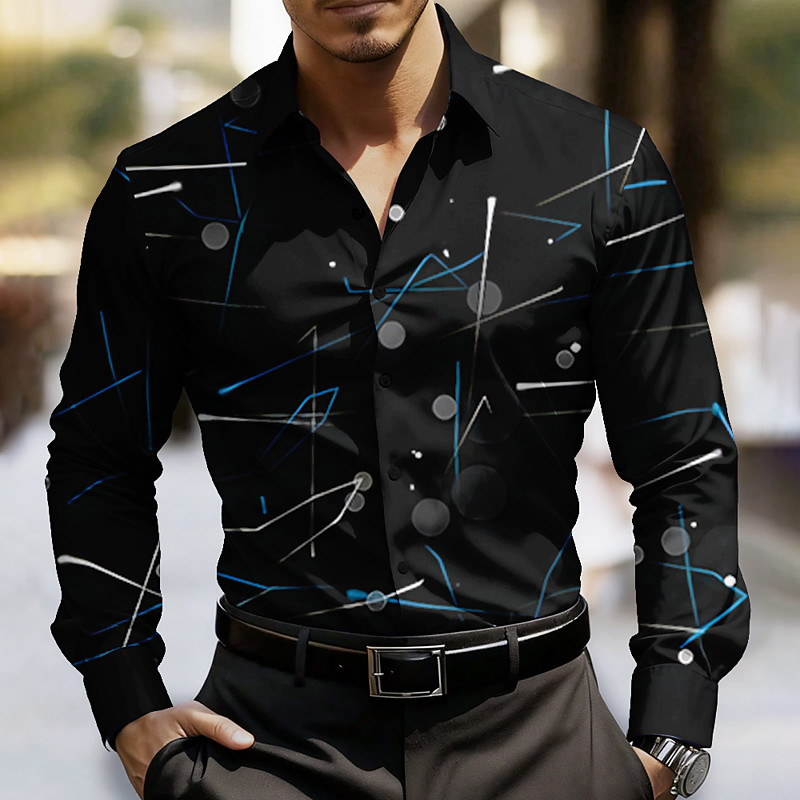 Men's Geometric Pattern Line Abstract Art Shirt Button Up Shirt Long Sleeve Fashion Casual Outdoor Dailywear Spring Fall Turndown 3D Print Collared Shirts Black Red Black / Blue Black / Orange