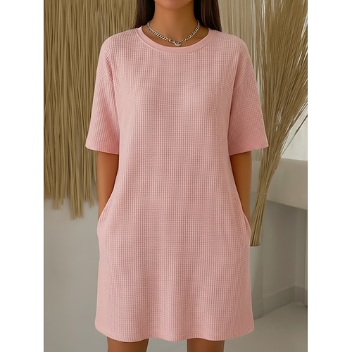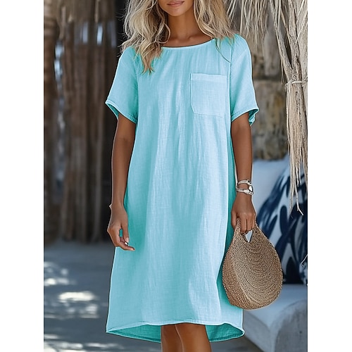 Per donna Abito al ginocchio Misto cotone Vestito Casual Abito in cotone Vestito T-Shirt Moda Moderno Quotidiano Vacanza Uscire Vestibilità comoda Semplice Manica Corta Girocollo Blu Bianco Rosa Verde