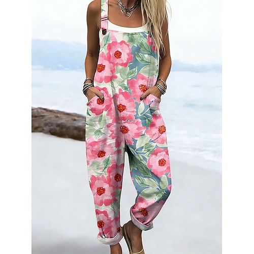 Per donna Tuta Attivo Floreale Senza Maniche Senza maniche Collo quadrato Tasca Stampato Quotidiano Spiaggia Vestibilità comoda Rosa Estate