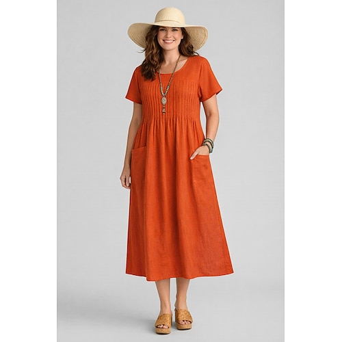 Per donna Abito maxi Misto cotone Vestito a caftano Vestito Casual Abito lungo in cotone Essenziale Casual Quotidiano Vacanza Vestibilità comoda Semplice Manica Corta Girocollo Cachi Verde militare