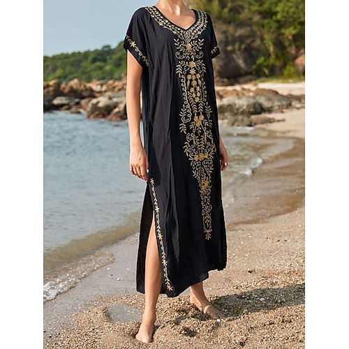 Per donna Abito Midi Abito Boho Abito Vintage Vestito Casual Abito in cotone Elegante Vintage Moda Quotidiano All'aperto Vacanza Vestibilità comoda Grafico Manica Corta Scollo a V Nero Bianco