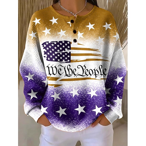 Giorno dell'Indipendenza Felpe Patriottiche da Donna Stampa Grafica Lettera Moda Casual Stampa Maniche Lunghe Collo A Giro Top Regolari Casual Strada Bottoni Blu Giallo Rosso Viola Primavera Autunno