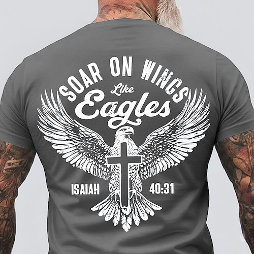 Maglietta Motivazionale della Bibbia Uomo Volare sulle Ali come Isaia 40:31 Aquila Croce Cristiano Religioso Fede Grafica Collo a Giro Regolare Fit Casual Designer Abbigliamento