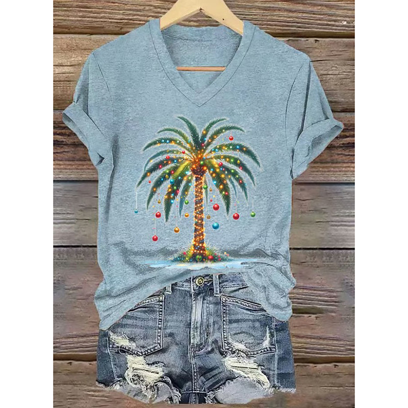 Women's T Shirt Graphic Tree Vintage Stylish Classic Short Sleeve V Neck Regular Tops Daily Print Blue Black White Red Green Summer Spring Fall Winter