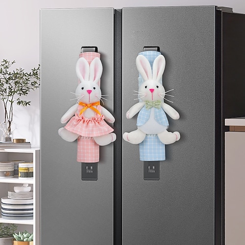 2 coprimaniglie per elettrodomestici da cucina a forma di coniglietto pasquale, grazioso design 3D con colori pastello, materiale morbido e resistente, adatti per frigorifero, microonde, forno,