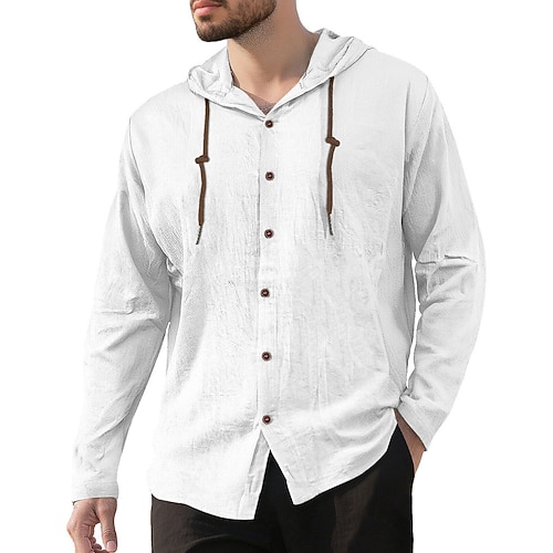 Per uomo Camicia Camicia di lino Camicia Estiva Camicia da Spiaggia Semplice Vacanza Casuale Nero Bianco Blu marino Cachi Manica Lunga Con Cappuccio Primavera Autunno Abbigliamento Coulisse
