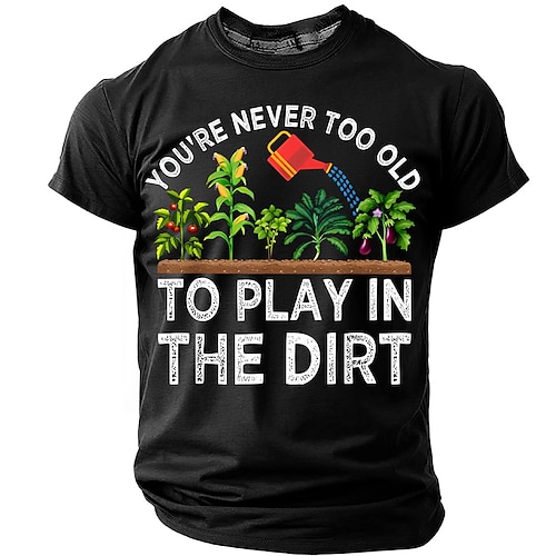 Vatertagsgeschenk für Herren: „Man ist nie zu alt, um im Dreck zu spielen" – Gartenarbeit mit Gießkanne – Lustiges Gärtnergeschenk – Grafik-T-Shirt – Normale Passform – Outdoor-Designerbekleidung –
