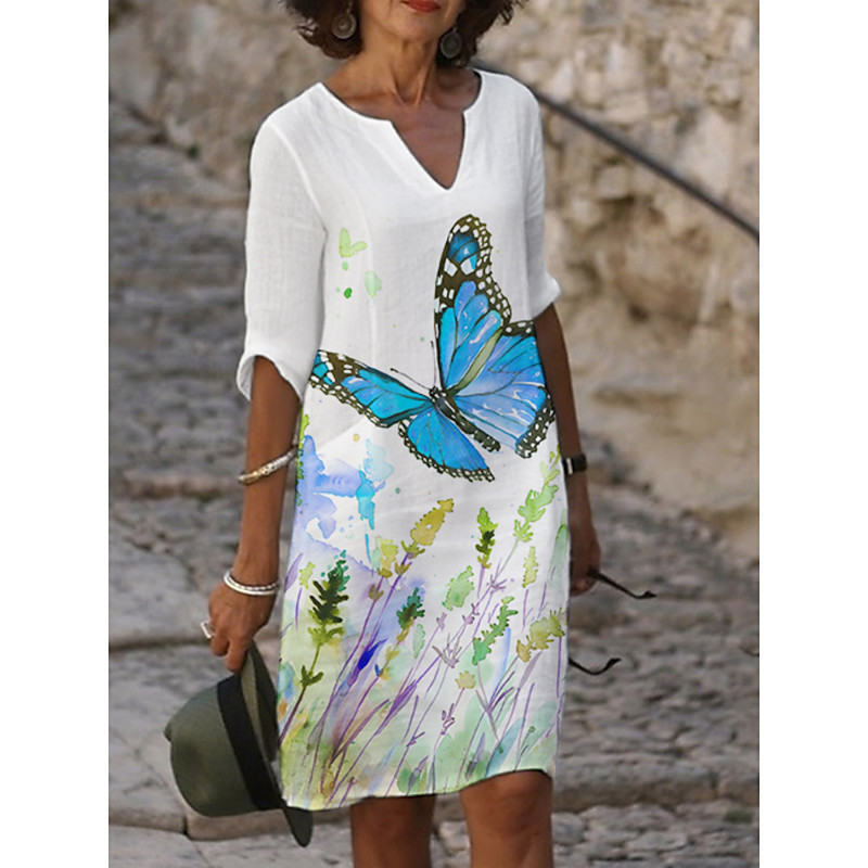 Women's Midi Dress Casual Dress Print Dress Fashion Modern Daily Beach Weekend Regular Fit Floral Butterfly 3/4 Length Sleeve Crew Neck Yellow Blue Purple Orange Summer Spring Fall Autumn