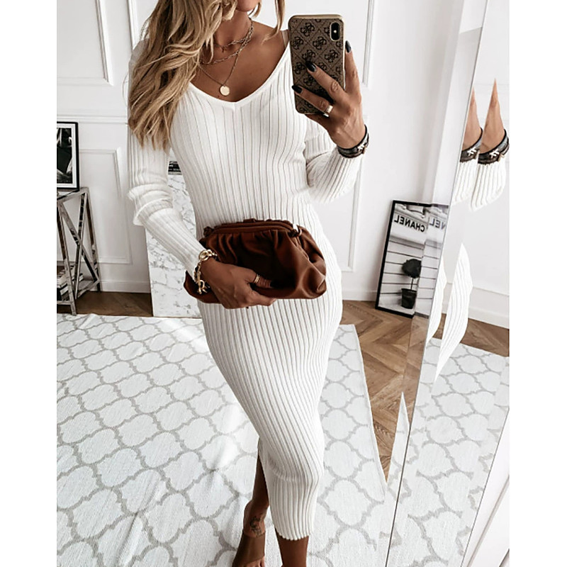 Women's Midi Dress Sweater Dress Casual Dress Elegant Fashion Modern Outdoor Daily Going out Regular Fit Plain Long Sleeve Crew Neck Black White Light Brown Blue Spring Fall Autumn