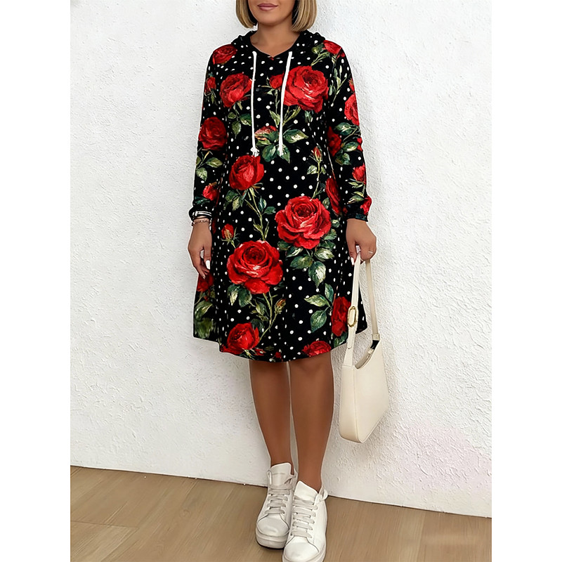 Women's Mini Dress Hoodie Dress Casual Dress Elegant Fashion Modern Outdoor Daily Weekend Regular Fit Floral Rose Long Sleeve Hooded Black Spring Fall Winter
