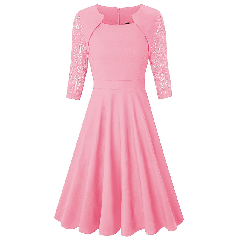 Women's Mini Dress A Line Dress Elegant Party Cocktail Wedding Outdoor Party Regular Fit Solid Color 3/4 Length Sleeve Square Neck Pink Wine Red Navy Blue Spring Fall