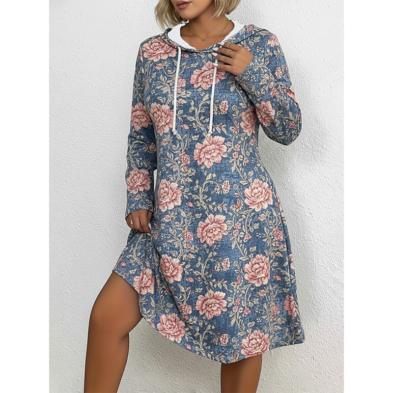 Women's Mini Dress Hoodie Dress Casual Dress Elegant Fashion Modern Outdoor Daily Weekend Regular Fit Floral Long Sleeve Hooded Blue Spring Fall