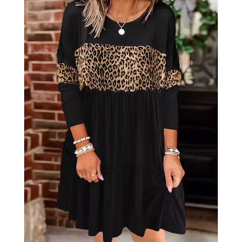 Women's Mini Dress Casual Dress T Shirt Dress Tee Dress Modern Vacation Daily Holiday Loose Fit Leopard Long Sleeve Crew Neck Black Red Orange Spring Fall