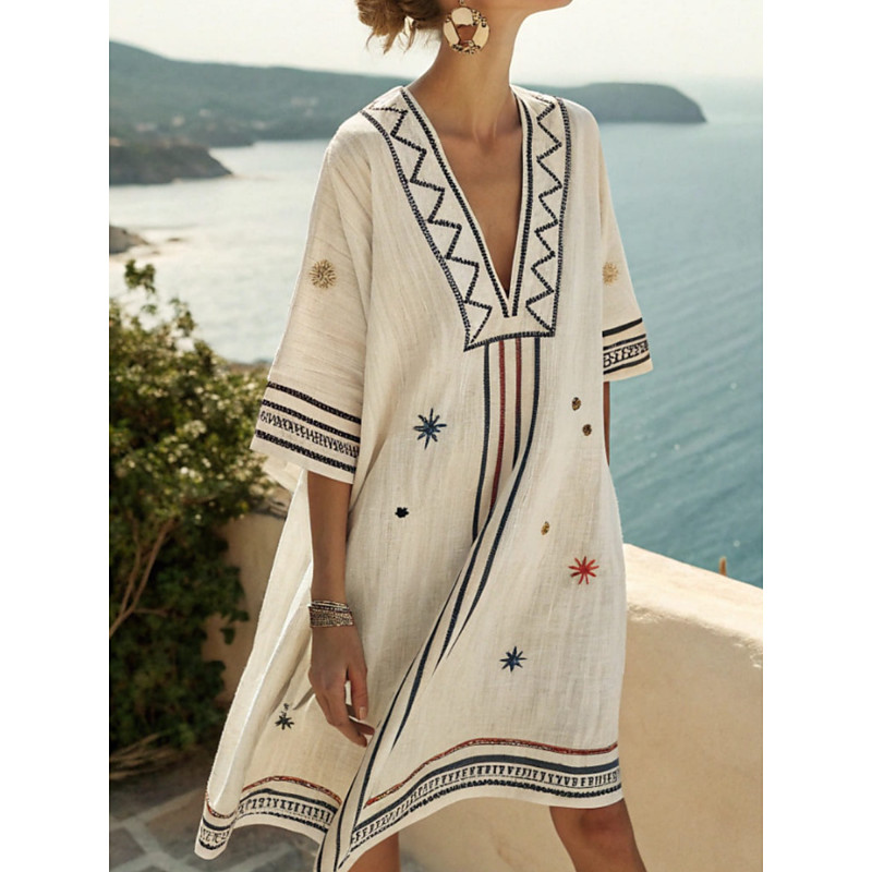 Women's Mini Dress Shift Dress Casual Outdoor Going out Loose Fit Floral Geometric Stripe Half Sleeve V Neck Blue White Dark Red Red Summer Spring