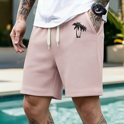 Per uomo Albero di Cocco Piante Tropicali Pantaloncini Waffle Pantaloncini casual Pantaloncini strutturati Misura del girovita medio Hawaiano All'aperto Vacanza Coulisse elastica in vita Pantaloncini