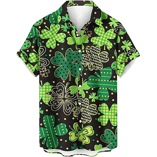 camicia da uomo per il giorno di san patrizio camicia hawaiana estiva stampe grafiche giorno di san patrizio st. giorno di san patrizio trifoglio turndown giallo chiaro verde / nero verde oliva