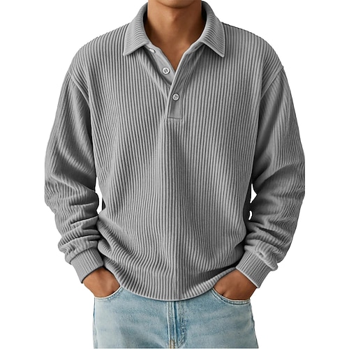 Per uomo Camicia di Velluto a Coste Testurizzato Casuale Sportivo Bavero Manica Lunga Moda Essenziale Blocco di colori Bottoni Caldo Autunno Primavera Autunno Vestibilità regolare Nero Blu scuro