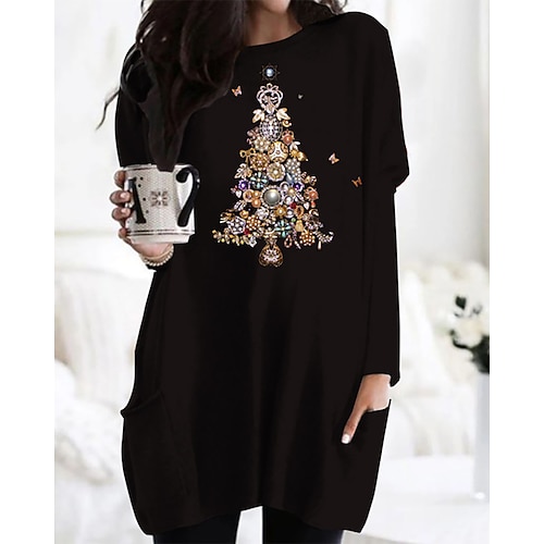 Per donna Mini Abito Abito di Natale Abito Stampato Moda Moderno Quotidiano All'aperto Vacanza Vestibilità regolare Grafico Manica Lunga Girocollo Nero Autunno Inverno