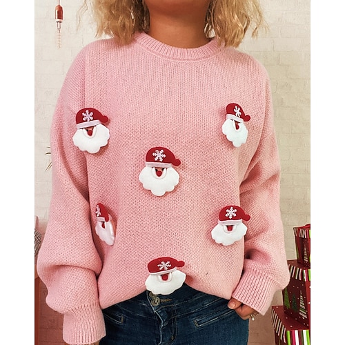 Per donna Felpa Maglione Pom Pom regalo di Natale Streetwear Pupazzo di neve A Coste Girocollo Lavorato a maglia Manica Lunga Top Regolari Maglia Natale All'aperto Ferie Nero Rosa Autunno Inverno