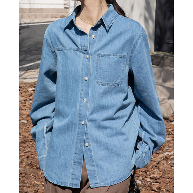 Women's Shirt Blouse Plain Casual Long Sleeve Shirt Collar Regular Tops Daily Holiday Pocket Buttons Blue Fall Winter