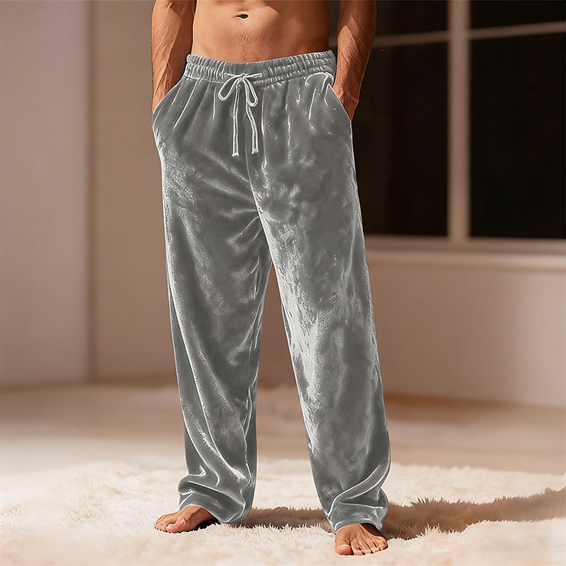 Men's Straight Leg Sweatpants Velvet Pants Drawstring Pocket Elastic Waist Plain Comfort Warm Daily Casual Blue Black Micro-elastic