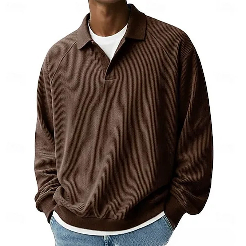Men's Waffle Polo Shirts Polo Shirts Street Casual Lapel Long Sleeve Basic Modern Plain Buttons Spring Fall Regular Fit Dark Gray Black White Navy Blue Light Grey Orange Waffle Polo Shirts