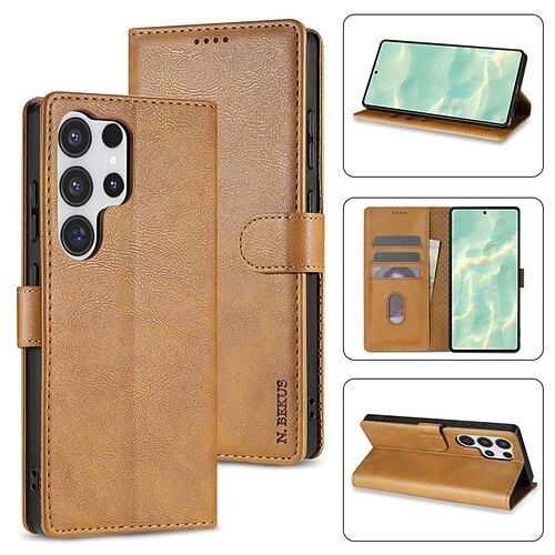 Handy Hülle Handyhüllen Für Samsung Galaxy S26 S26 Ultra Plus Brieftaschenhülle Mit Ständer mit Trageriemen Kartenfach Retro TPU PU-Leder