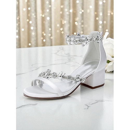 sandali da sposa in raso verde da donna – scarpe da sposa con punta aperta, cinturino alla caviglia con strass e tacco a blocco per la sera e il ballo di fine anno
