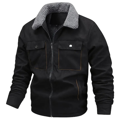 Per uomo Giacca in finta pelle scamosciata Giacca Sherpa Giacca in Camoscio Marrone Casuale Quotidiano Calore Termico Tasca Autunno Inverno Attivo Vintage Regolare Nero Caffè Grigio Giacca