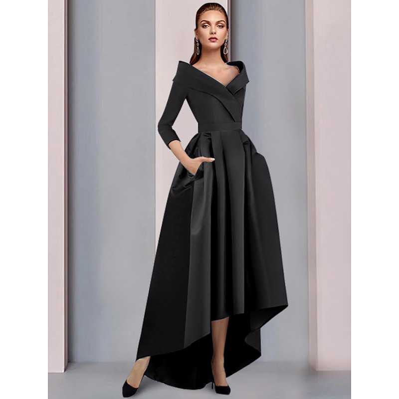 Mermaid Trumpet Asymmetrical Floor Length Cocktail Dresses Prom Dresses Evening Gown Ball Gown Elegant Sparkle Long Sleeve Off Shoulder Garden Party Wedding Stretch Crepe with Ruched