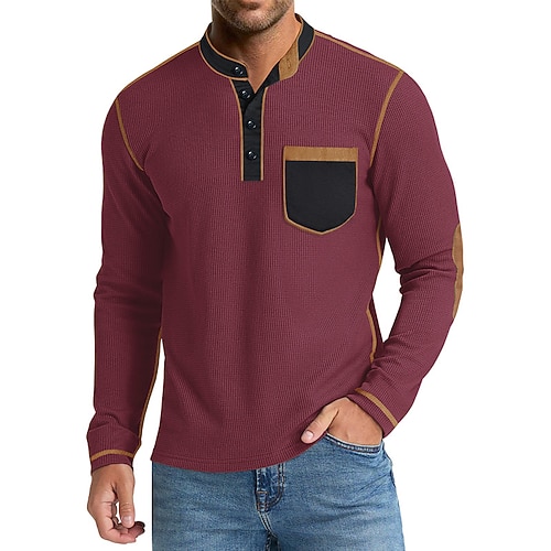 Herren Waffel-Henley-Hemd T-Shirt Herrenhemden mit Ellbogenflicken Langarm Henley Sommer Herbst Winter Einfarbig Einfach Mode Designer Lässig Vintage-Stil Farbblock Lässig Täglich Outdoor Hellblau