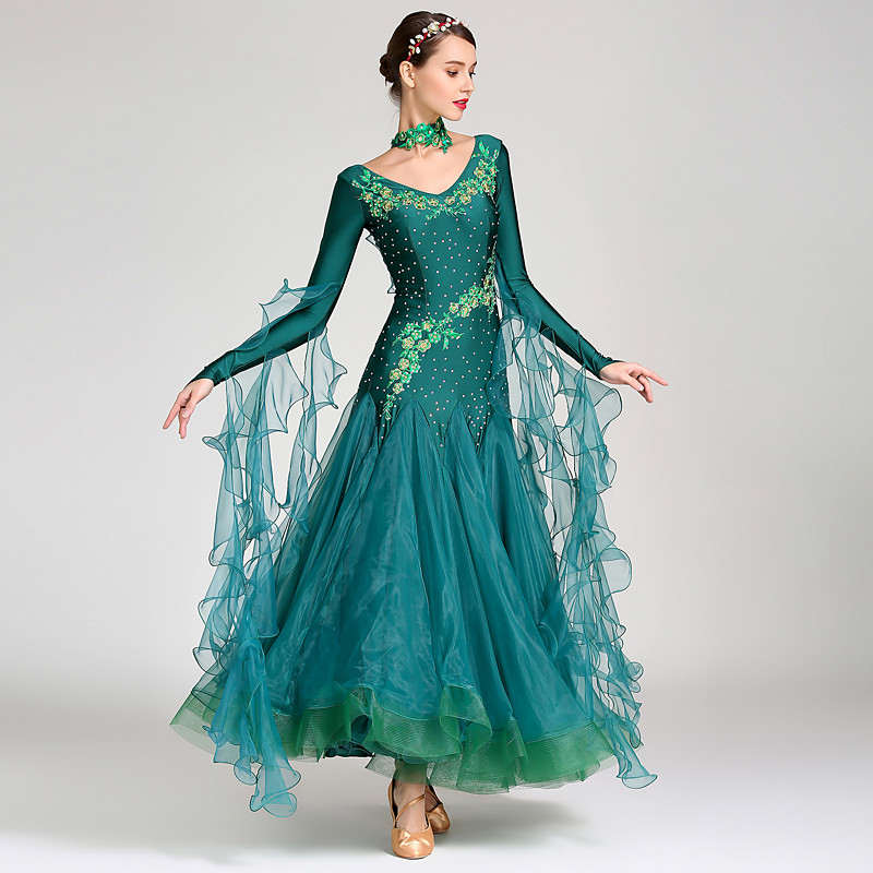 Ballroom Dance Dress Pure Color Women's Performance Training Theme Party Long Sleeve Spandex