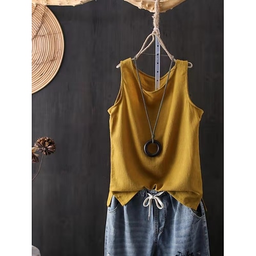 Per donna Blusa Tinta unica Vintage Elegante Essenziale Senza Maniche Girocollo Top Regolari Quotidiano Arricciato Bianco Giallo Rosa Marrone Beige Estate