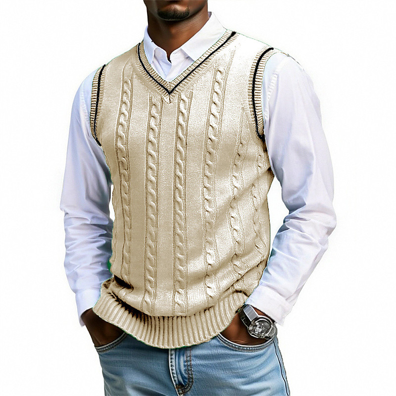 Men's Sweater Vest Dress Sweater Pullover Sweater Jumper Vest Knit Sweater Ribbed Knit Regular Tops Knitted Patchwork V Neck Fashion Streetwear Vacation Business Clothing Apparel Sleeveless Fall