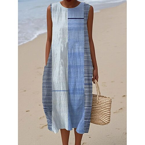 Per donna Abito Midi Vestito Estivo Abito a Tubino Abito a trapezio Vacanza Casual Boho Uscire Spiaggia Vestibilità comoda Grafico Geometrico Senza Maniche Girocollo Grigio verde Nero Rosa Cachi