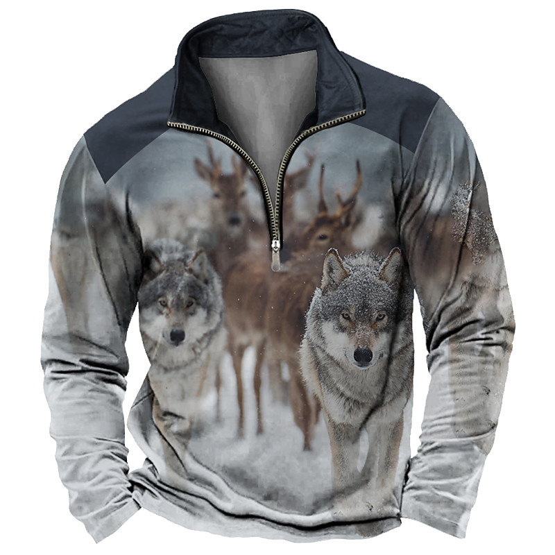 Men's Wolf 3D Print Sweatshirt Sports Fashion Casual Hunting Long Sleeve Zip Outdoor Party Streetwear Black Blue Brown Brown 2 Brown 3 Fall All Seasons Designer S M L XL XXL XXXL