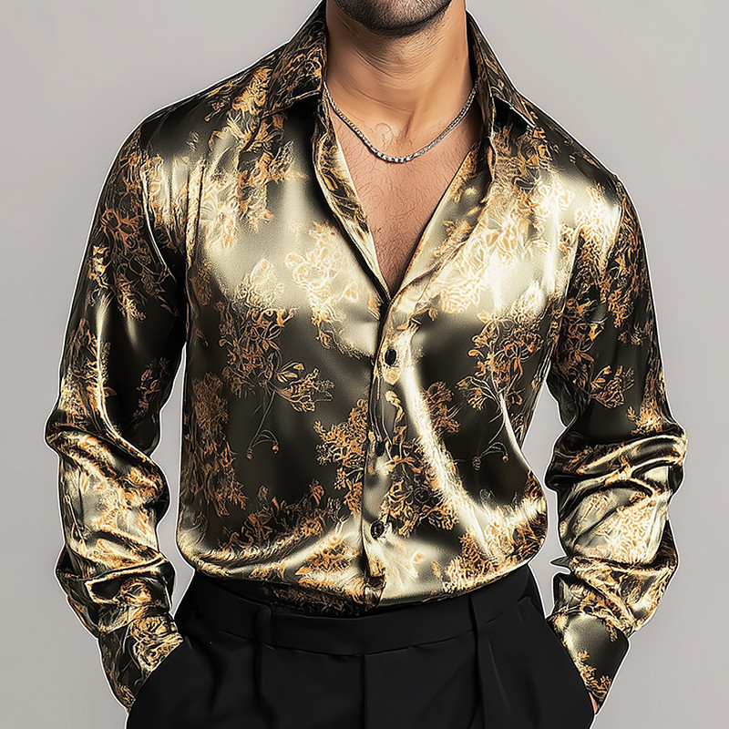 Men's Ethnic Intricate Floral Flowers Shirt Satin Shirt Dress Shirt Long Sleeve Vintage Retro Vacation Dailywear Summer Spring Fall Turndown 3D Print Button Up Shirts Blue Purple Gold Light Grey Gray