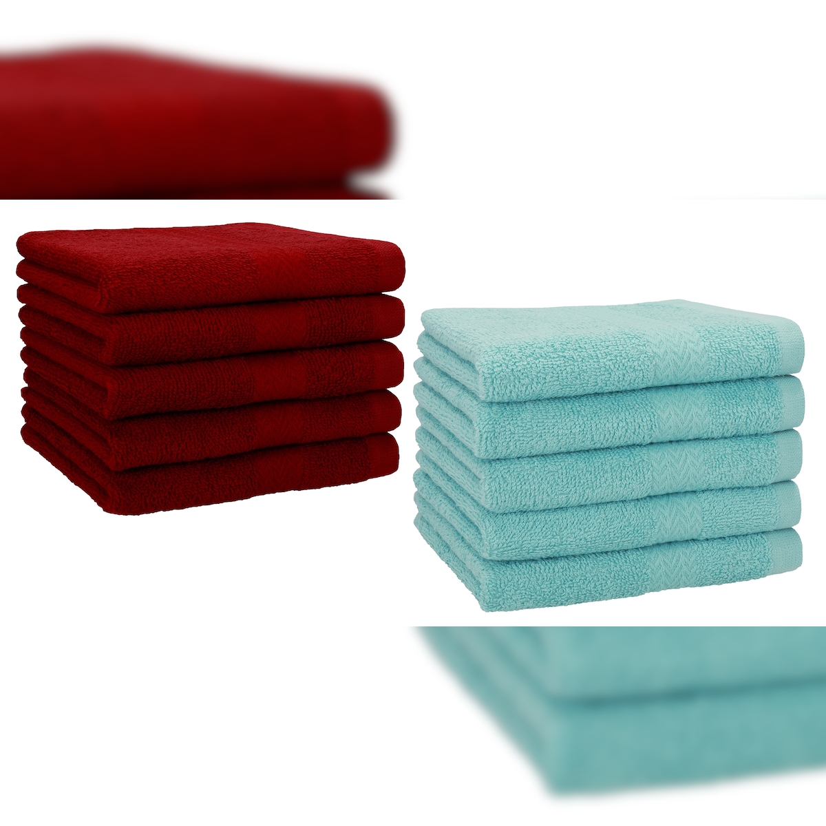 Betz 10 Stück Gästehandtücher PREMIUM 100% Baumwolle Gästetuch Set 30x50 cm rubinrot und ocean