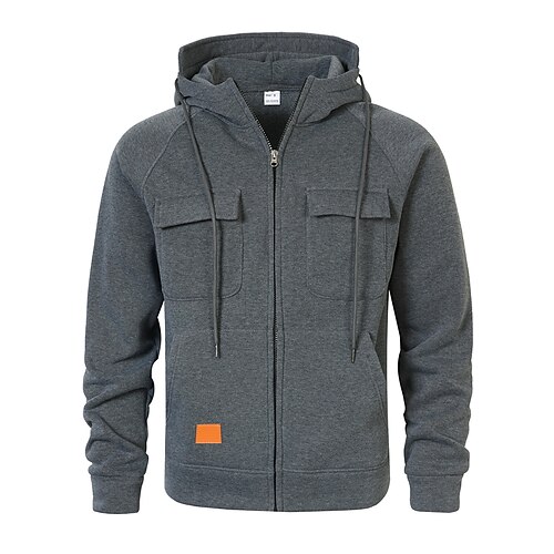 Per uomo Giacca con cappuccio Felpa con zip intera Baggy con tasche Manica Lunga Top Athleisure Tinta unita Palestra Escursionismo Allenamento abbigliamento sportivo Abbigliamento sportivo Grigio