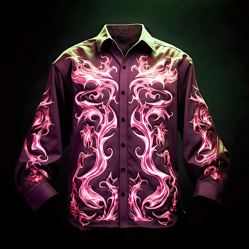 Men's Flame Shirt Button Up Shirt Long Sleeve Artistic Abstract Daily Wear Going out Fall Winter Turndown Print Button-Down Purple Fuchsia Green
