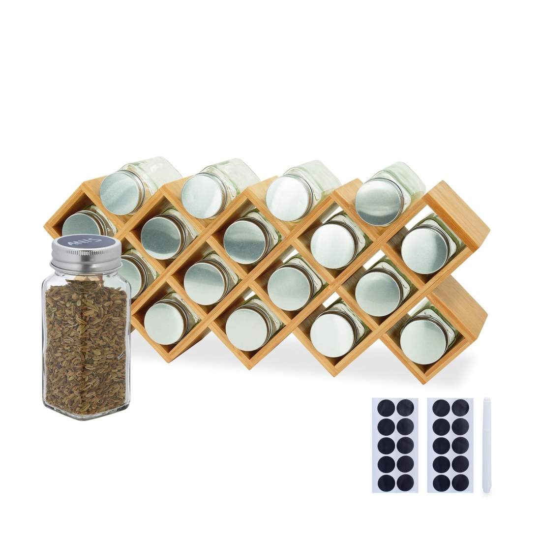 Bambus krydderirække med krukker – Pladsbesparende køkkenorganisator