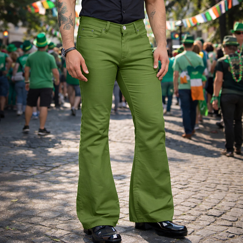St.Patrick 2026 Retro Vintage 1970s Trousers Bell Bottom Pants Flared Trousers Hippie Disco Solid Color Fancy Dress Men's Halloween Carnival Party Dailywear Pride Parade Adults' All Seasons